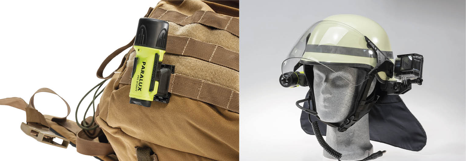 Mit den Produktneuheiten, die PARAT jetzt für das PARASNAP® System vorstellt, werden weitere Optionen für die sichere Befestigung von Leuchten und der Sicherheitsausstattung geschaffen. So kann mit dem neuen Ultralux Base MiniMount die sichere und feste Verbindung zu Riemen aller Art, ob am Schlaufensystem eines Rucksacks oder dem Riemen eines Atemschutzgerätes befestigt werden. Bislang war es notwendig, den Riemen oder auch den Gürtel zu öffnen, um die entsprechende Verbindung zu schaffen. Jetzt ist dies auch bei fest vernähten Riemen und Bändern möglich.