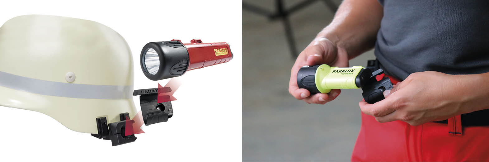 Ganz gleich, ob am Helm, Gürtel, Rucksack oder Atemschutzgerät – mit dem PARASNAP® können die Sicherheitsleuchten von PARAT problemlos an einer Vielzahl verschiedener Ausrüstungselemente sicher und griffbereit angebracht werden. So sind sie immer dort, wo sie gebraucht werden.