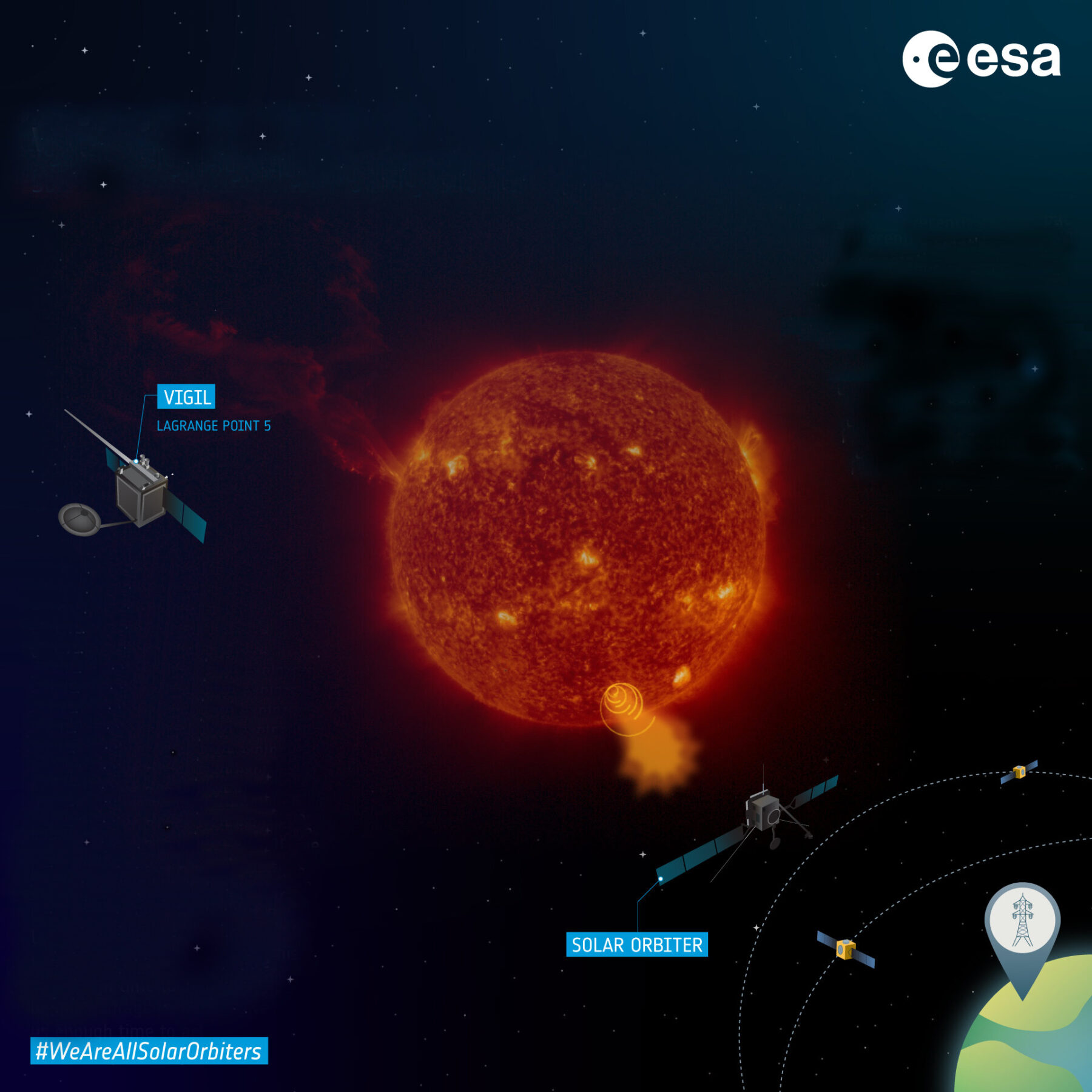 Sonnenstürme können sich auf Stromnetze auswirken und die Energieversorgung lahmlegen. In einer Veröffentlichung der ESA in 2018 zu ESA VIGIL wird Luha-Pekka Luntama, verantwortlich für das Weltraumwetter im Missionskontrollzentrum der ESA in Darmstadt, zitiert: „Eine der besten Möglichkeiten, die sich schnell ändernde Sonnenaktivität zu beobachten, besteht darin, ein spezielles Raumfahrzeug etwas von unserer direkten Linie zur Sonne entfernt zu positionieren, so dass es die „Seite“ unseres Sterns beobachten kann, bevor diese sich in das Blickfeld dreht“, Juha-Pekka weiter: „Die Raumsonde würde entscheidende Daten liefern, die uns helfen werden, erdnahe Auswürfe zu erkennen, unsere Vorhersagen über die Ankunftszeit auf der Erde zu verbessern und fortgeschrittenes Wissen über aktive Regionen auf der Sonne zu liefern, während sie sich in Sicht drehen.“