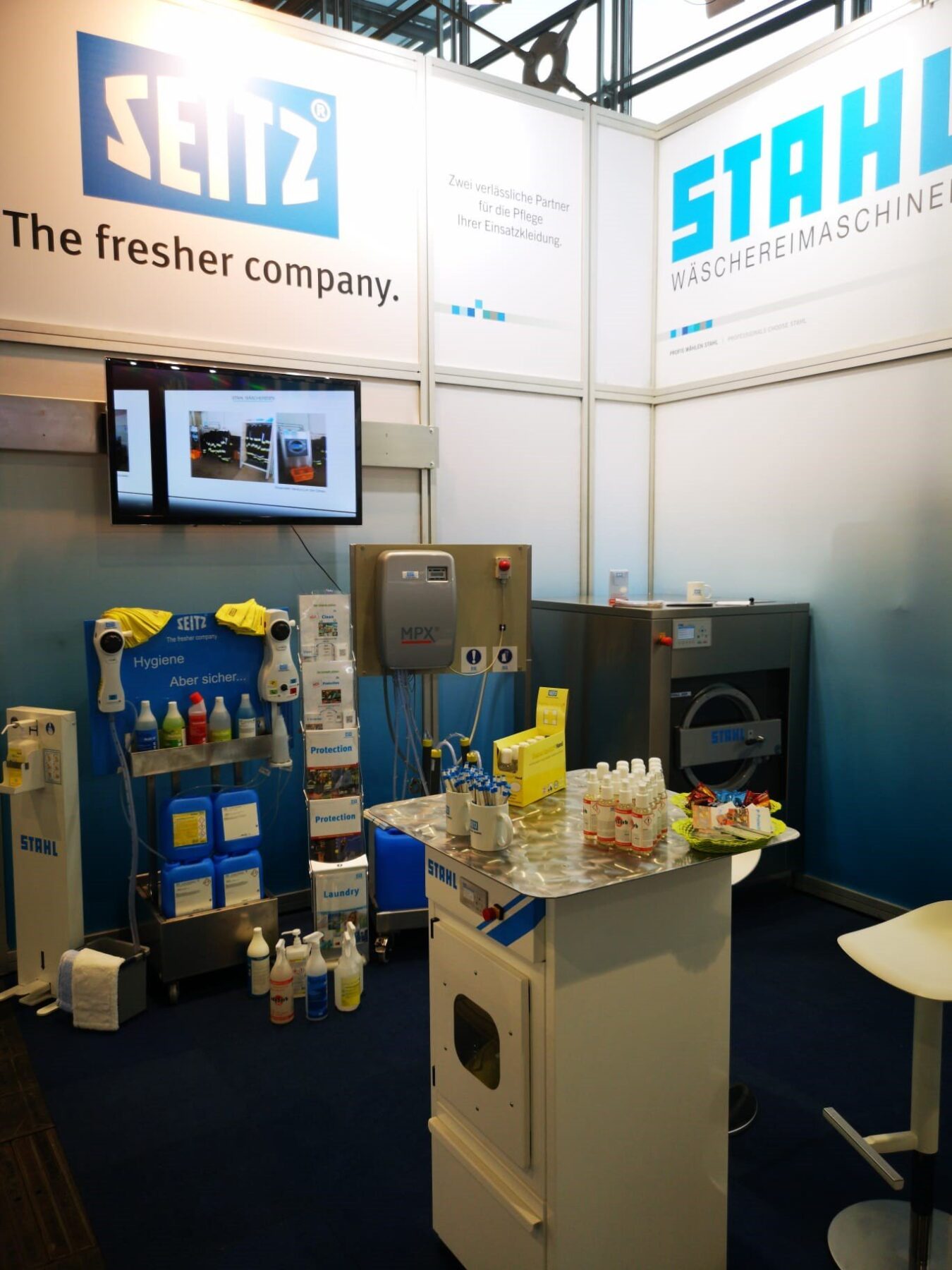 STAHL Wäschereimaschinen präsentiert sich in Halle 014, Stand L22 gemeinsam mit dem Waschmittelhersteller Seitz und Kooperationspartner I.F.R.T. auf der Interschutz und freut sich über einen tollen Auftakt am ersten Tag.