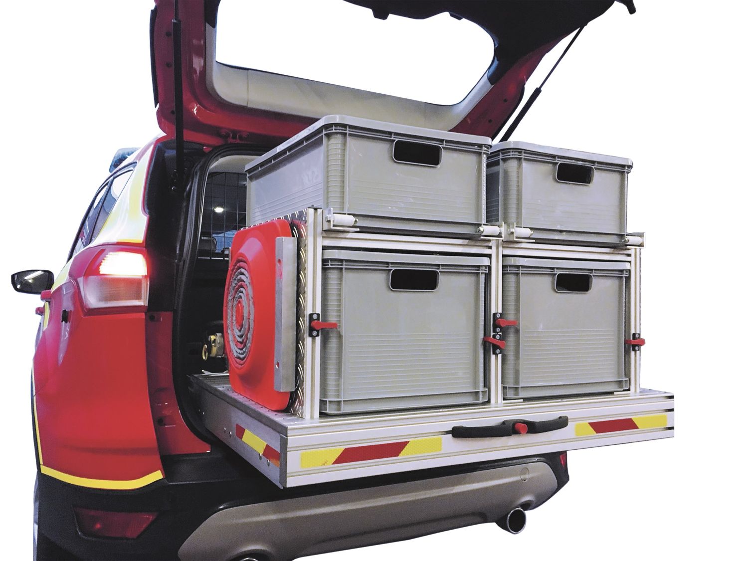 Auch die Lagerung von elektrohydraulischen Rettungsgeräten im Fahrzeug und an Einsatzorten ist möglich. (C) MiniTec