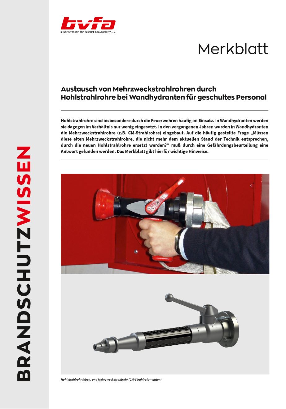 Das Merkblatt „Austausch von Mehrzweckstrahlrohren durch Hohlstrahlrohre bei Wandhydranten für geschultes Personal“ (C) bvfa