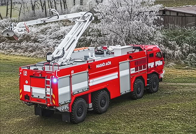 Der TATRA Force3 mit CZVS 40 Aufbau verfügt über einen 10.000-Liter-Wassertank und einen Teleskoparm mit Wasserstrahlschneidsystem. Möglich sind so effektive Brandbekämpfung in explosiven, gefährlichen oder schwer zugänglichen Bereichen. Aus sicherer Entfernung kann mit dem gelenkigen Löscharm mit Kamerasystem gezielte Brandbekämpfung erfolgen.